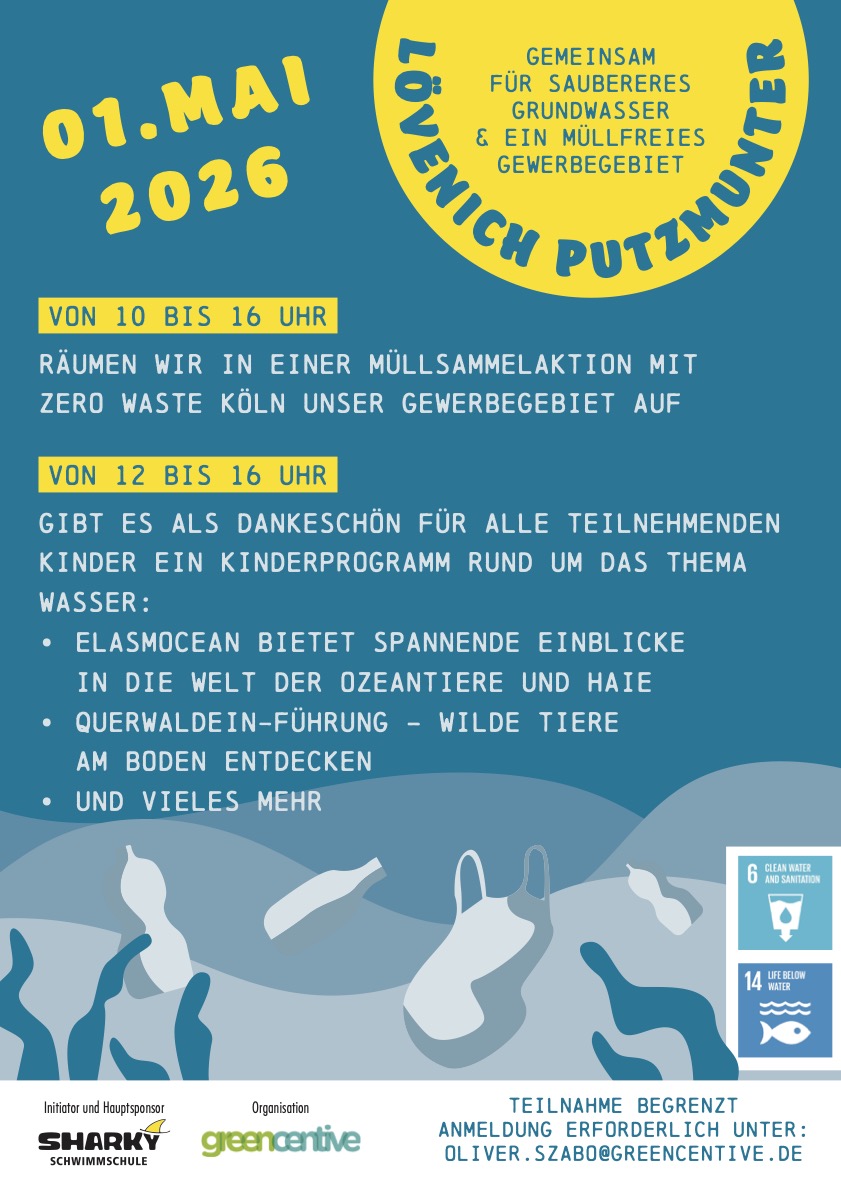 - 2026 Lövenich Putzmunter – Clean up im Gewerbegebiet Köln-Lövenich mit hochwertigem Danke schön BIldungs-Programm für Kinder.
