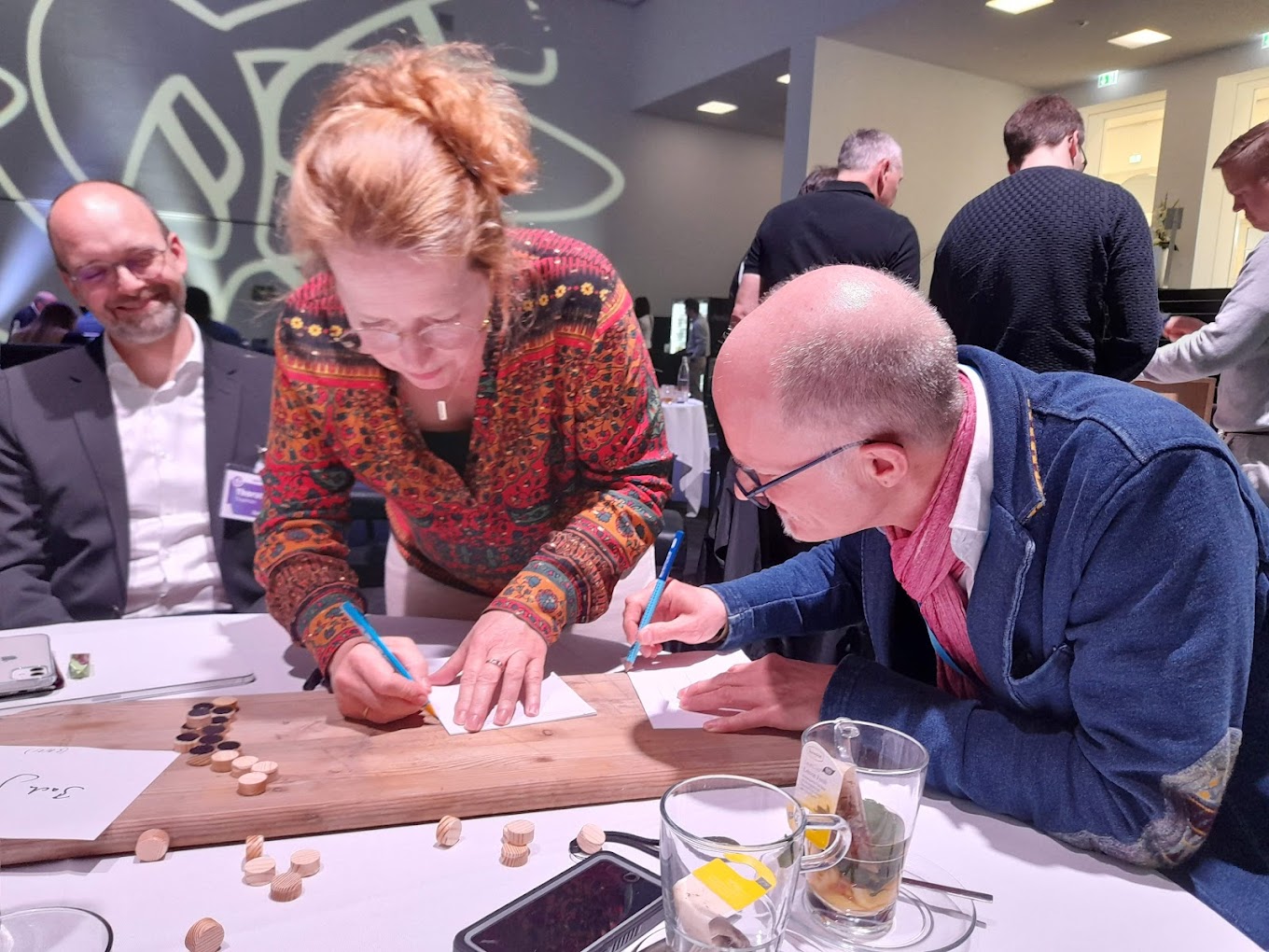 Die Teams hatten Zugang zu recycelten Materialien, um Spiele wie Tischtennis oder Schach zu bauen. Ziel war es jedoch, das Spiel anders zu gestalten als sonst gespielt wird. Um dies zu erreichen, mussten die Teilnehmer zusammenarbeiten und über den Tellerrand schauen. Falls die Spiele gut konstruiert waren, würden sie nach der Konferenz an eine örtliche Kinderorganisation gespendet. Daher mussten wir gegenseitig die Spiele spielen, um die Robustheit zu testen.
